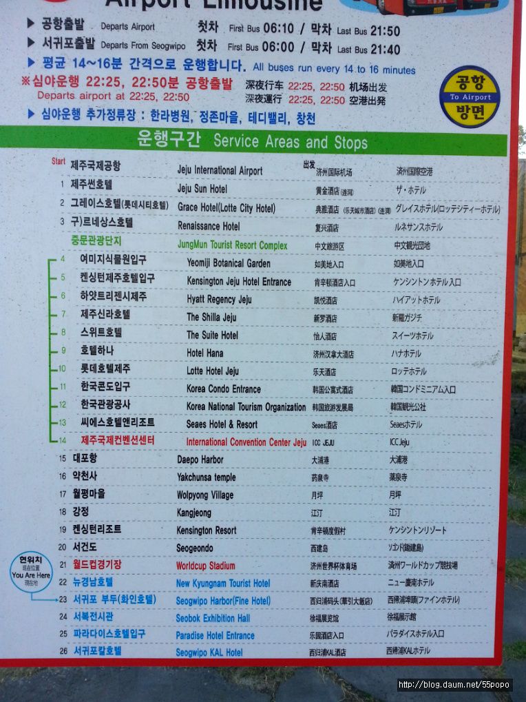 혹시라도 나처럼 걷다가 서귀포항에서 버스 탈분들을 위해서 사진으로 찍어왔다